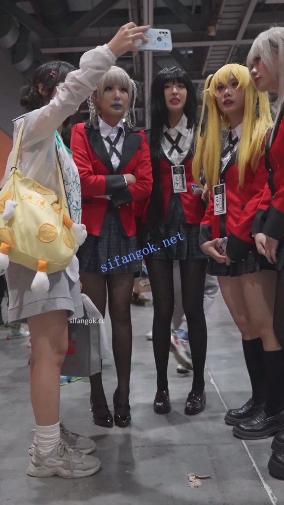 • 四位狂赌之渊coser小姐姐组团逛展,可爱的黑发小姐姐穿着黑丝配白内,另外三个同伴全穿着安全裤,就只有她一个人被CD。