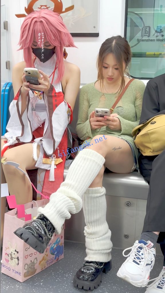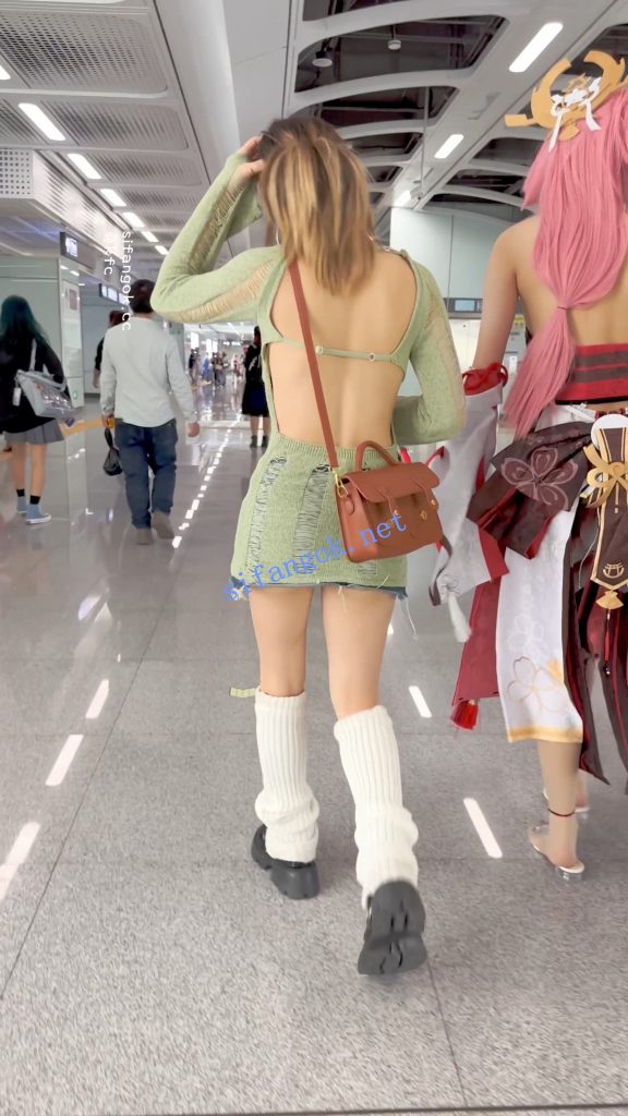 • 露背装学生妹和闺蜜逛街·过膝袜灰色窄内骚气外露